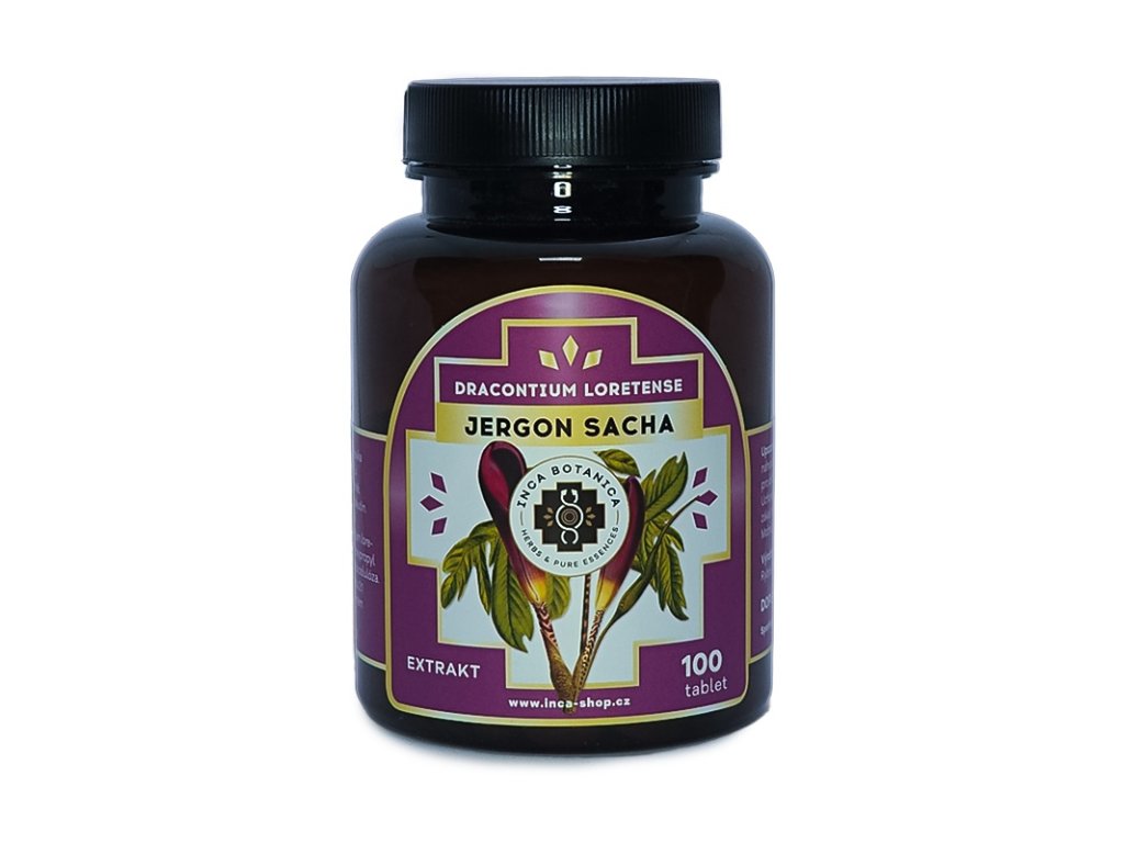 Stromek Jergon Sacha najdeme v tropických lesích Jižní Ameriky. Dorůstá výšky 4 metrů, má silný stromek podobný kmenu stromu a jeden obrovský, výrazně členitý list. Kůra této byliny připomíná hada. Rostlina plodí plody, které jsou velmi dobré a setkat se s nimi můžete v jihoamerické kuchyni. Domorodí obyvatelé si nicméně rostliny cení hlavně pro jiné schopnosti - mohutný hlíznatý kořen využívají jako protijed při hadím, pavoučím nebo hmyzím kousnutím. Rostlině se zde přisuzují až magické schopnosti. Z hlízy se vyrábí extrakty a prášek, který si můžete dopřát i vy - v podobě kapslí.